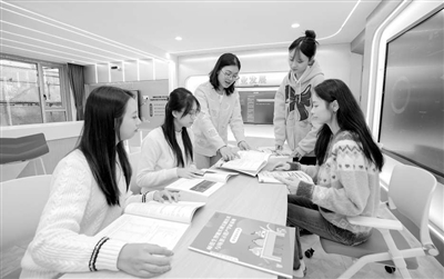 华南师范大学师范生正在基于智能分析报告进行协作学习。 吴建国 摄